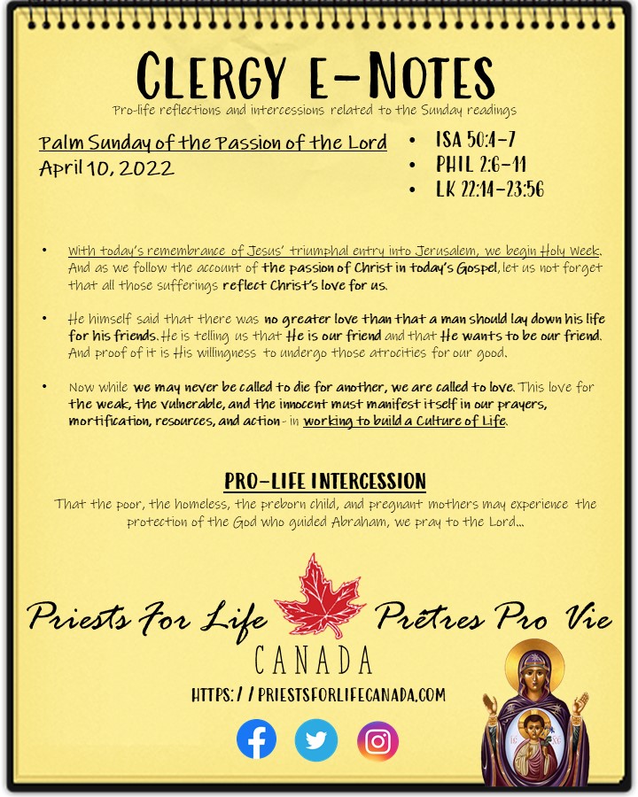 Its impact on my own life has been incomparable as I know it has on the lives of many many priests. General Intercessions A one - paragraph bulletin insert Suggestions for drawing pro-life themes out of the Sunday readings for the homily. The second is a wonderful suggestion for one of our intercessions for life.